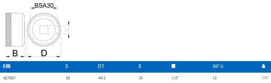 Soketin yan tarafındaki tırtıl, bardakları elle vidalarken daha iyi tutuş sağlarken 1/2˝ kare tahrik, tork anahtarları, mandallar ve sabit tutamaklarla kullanımı kolaylaştırır.