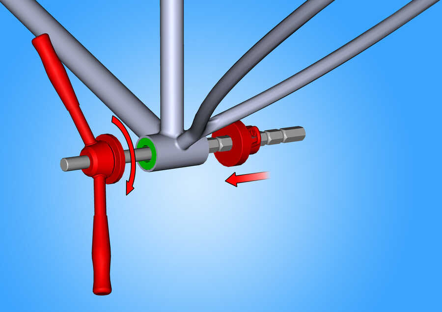 Bu alet, BB90 orta göbek sisteminin dişli olmayan orta göbek yataklarını ve çanaklarını çıkarmak için tasarlanmıştır.Ayrıca, BB86, BB92, SRAM Press Fit GXP gibi 24 mm iğ ile diğer baskıya geçme standartlarını da destekler.